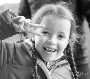 A girl makes a cool sign with her hand