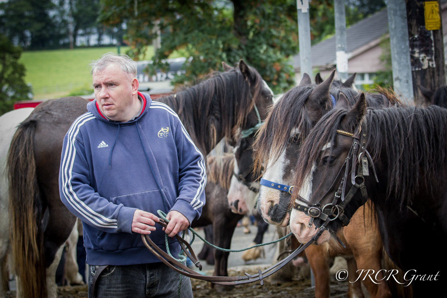 Staying at Buttevant in North Cork for images of the horses at Cahirmee Horse Fair. Here they are lined up in rows, one with faces to the fore, the other the hindquarters.