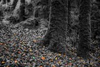 Coloured leaves on a forest floor