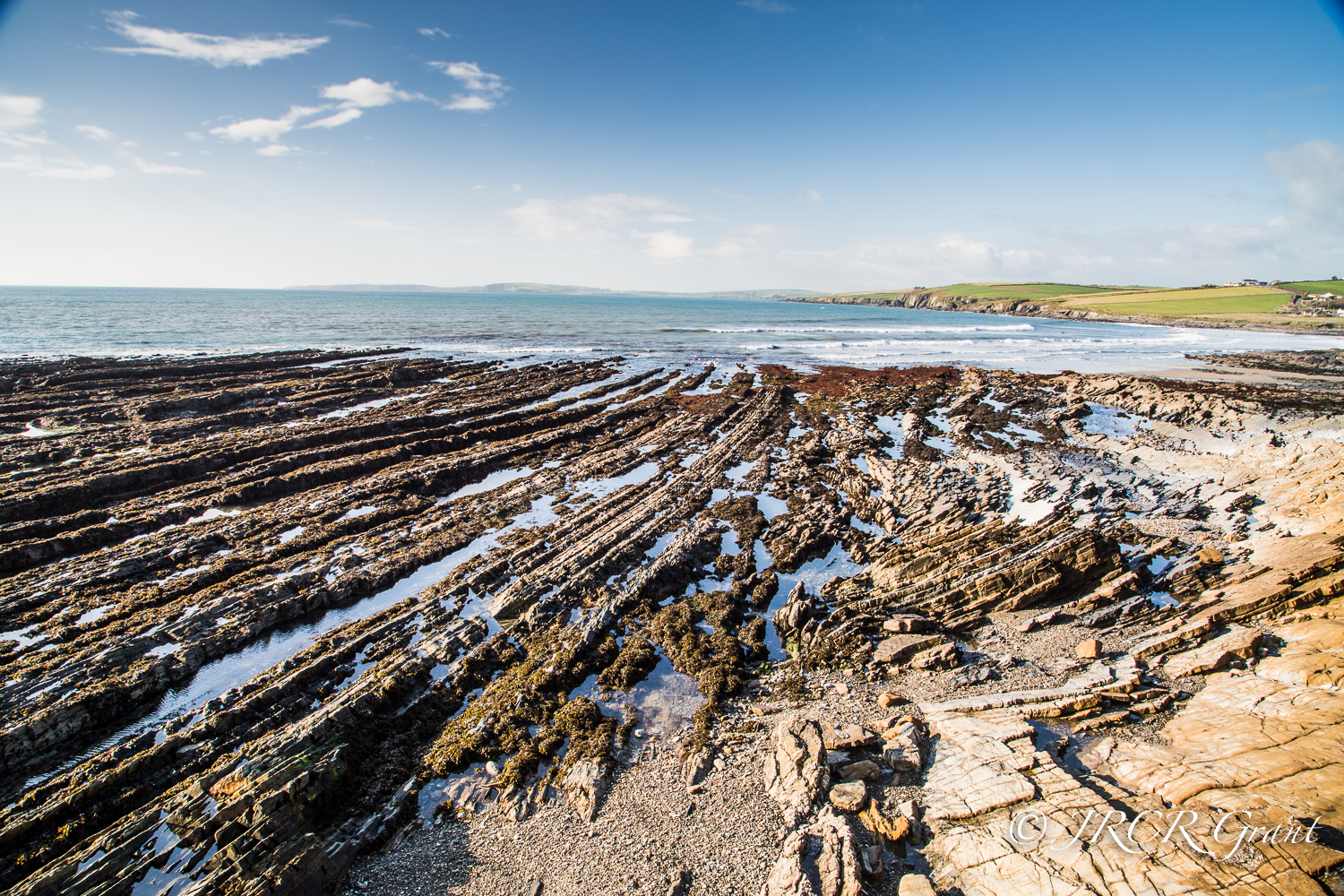 Walking to and from the two beaches, one cannot help but notice the rock strata below, falling away into the sea. With the low sun in the sky it is probably more noticeable at this time of year, the shadows exaggerated.