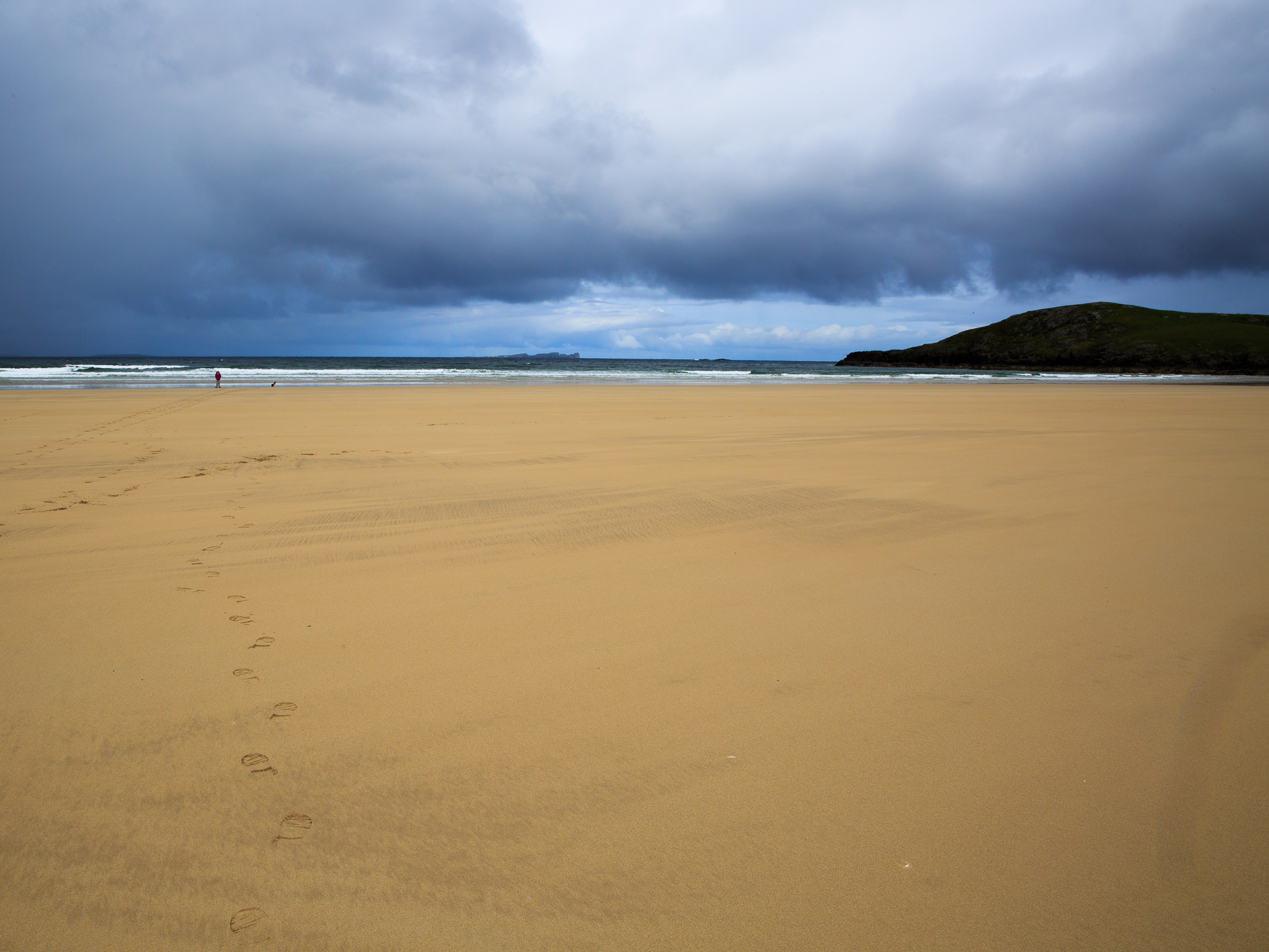 Here a dark storm rolls in from the Atlantic to provide a threatening backdrop to the bright sand.