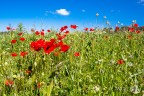 Poppies, Daisies and other flowers brighten a meadow