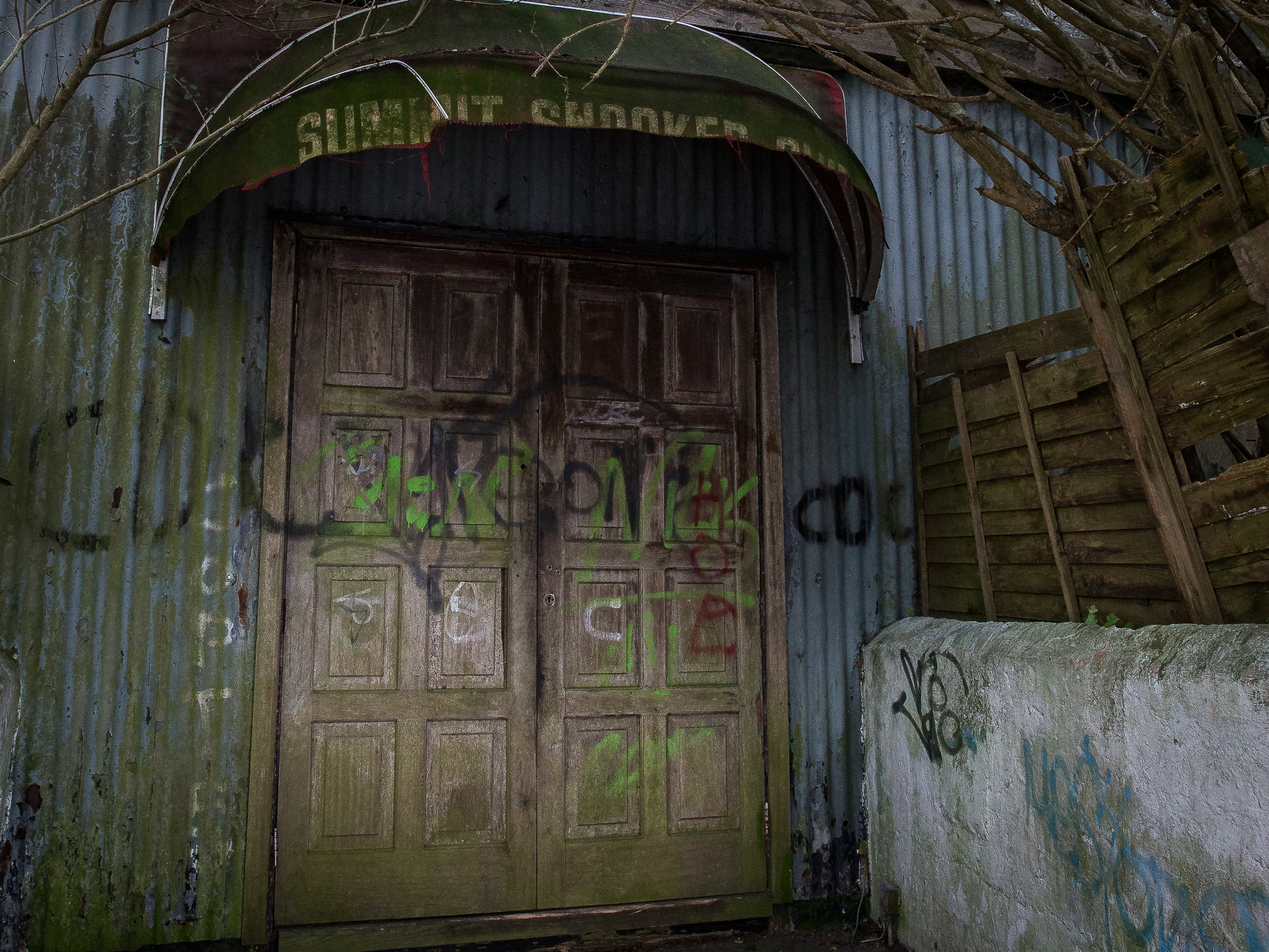 As we walked by to the top of Howth Head, north of Dublin, we passed a doorway partly hidden by overgrowth. This was the doorway to the Summit Snooker Club. It captured my attention.