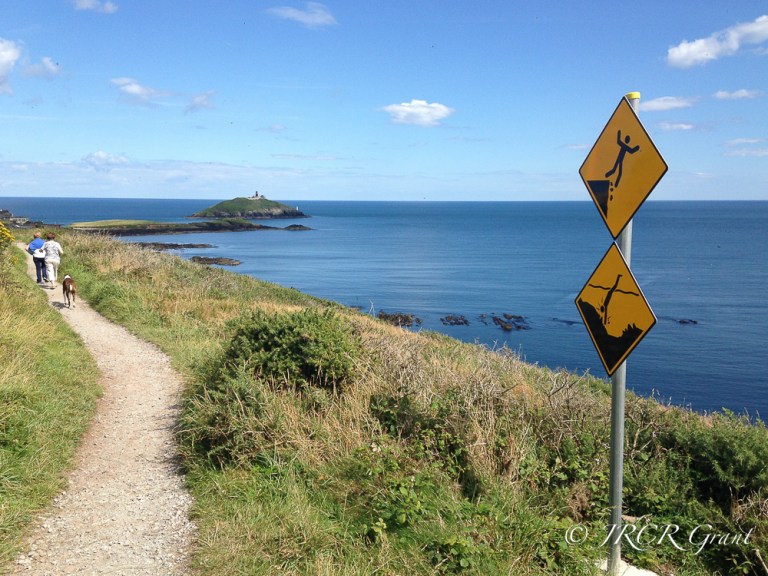Looking back along the cliffs one can take in the lighthouse at Ballycotton, near the commencement of the walk.
