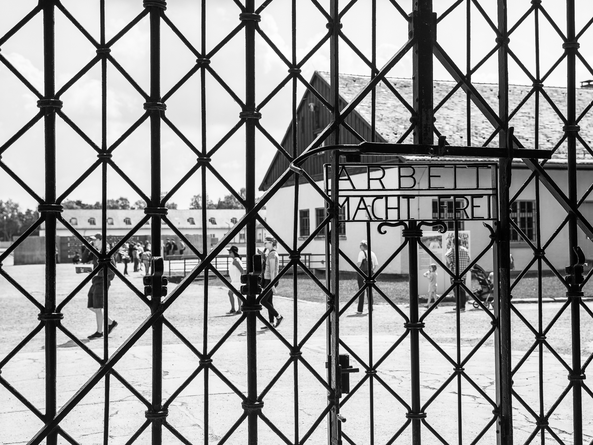 The words on the front gate of Dachau concentration camp are translated into “Work Sets You Free” and these words welcome the visitor to the camp today.