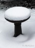 A bird bath covered in snow resembles a wedding cake