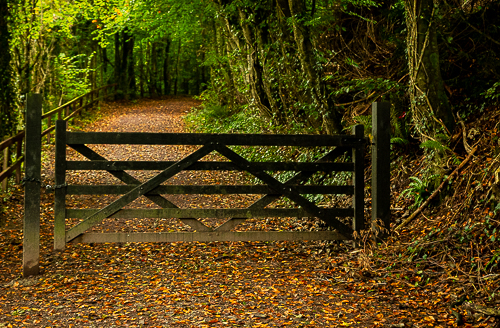 Take the river walk out of town to the west and where the path heads away from the river, follow it up to the road through an obvious path. On hitting the road take a right and very shortly you will come across the entrance to Glenabo Woods.