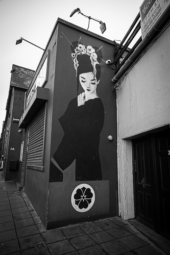 The above mural can be found on the Miyazaki Japanese Restaurant on Cork City just by the foot of Barrack Street, one of my favourite streets in Cork. I have yet to go to this restaurant or its sister restaurant Ichigo Ichie, but the reviews have been very good. In the current climate it may be a while before we can venture out to dine in these places once more.