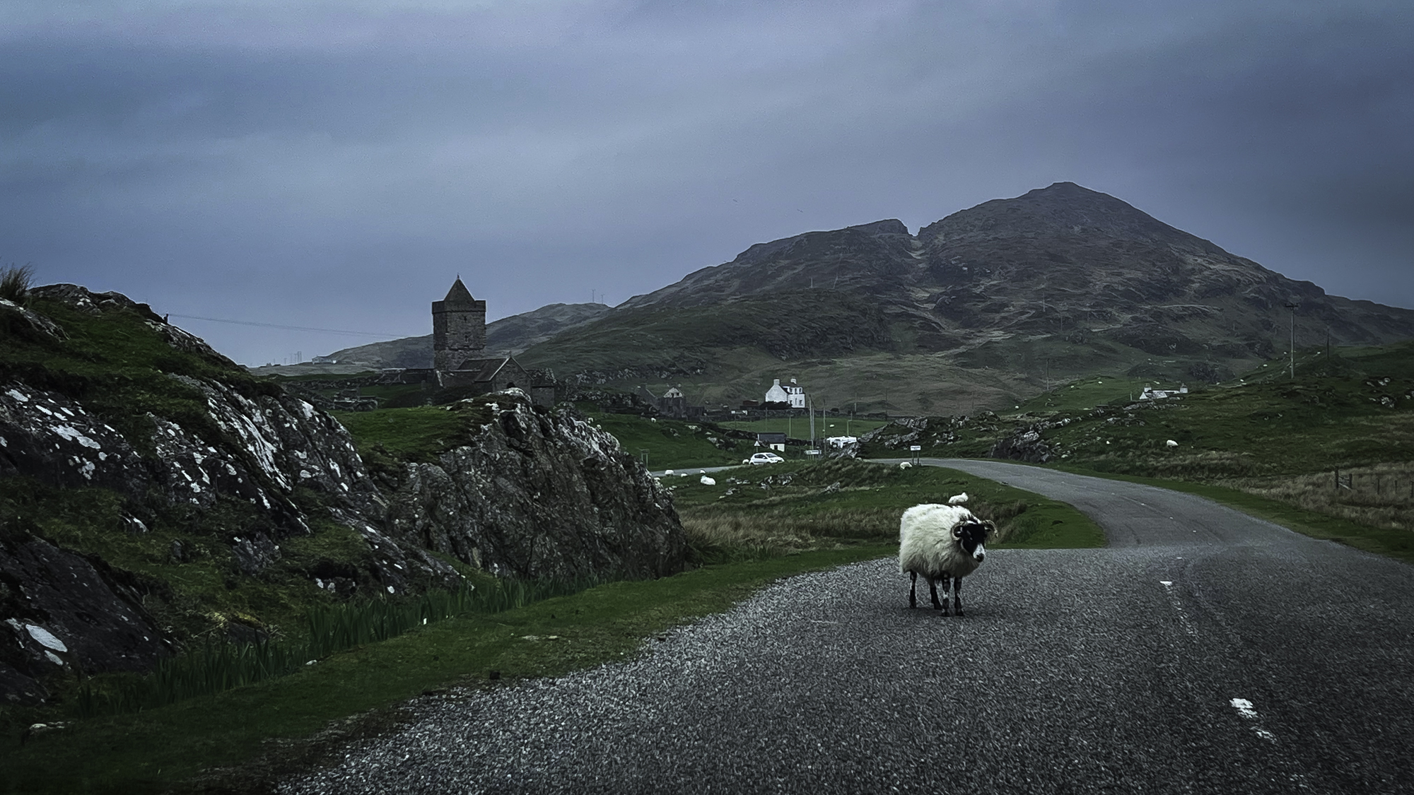 When we went to Roghadal Church, we found it to be protected by the most belligerent of sheep. To avoid the confrontation escalating any further, we had to pass on the other side of the road. What a stand-off.
