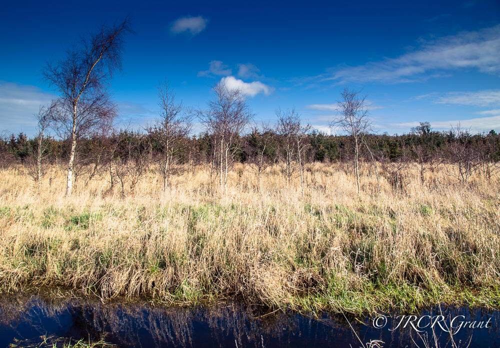 A bog in North Cork, dried grasses, silver birches and plenty of water