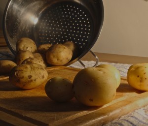 The Sage is happy as these early season potatoes are yielding a good number, even if many of them are on the small side. I like them on the small side for salads; no need to peel just give them a good scrub.