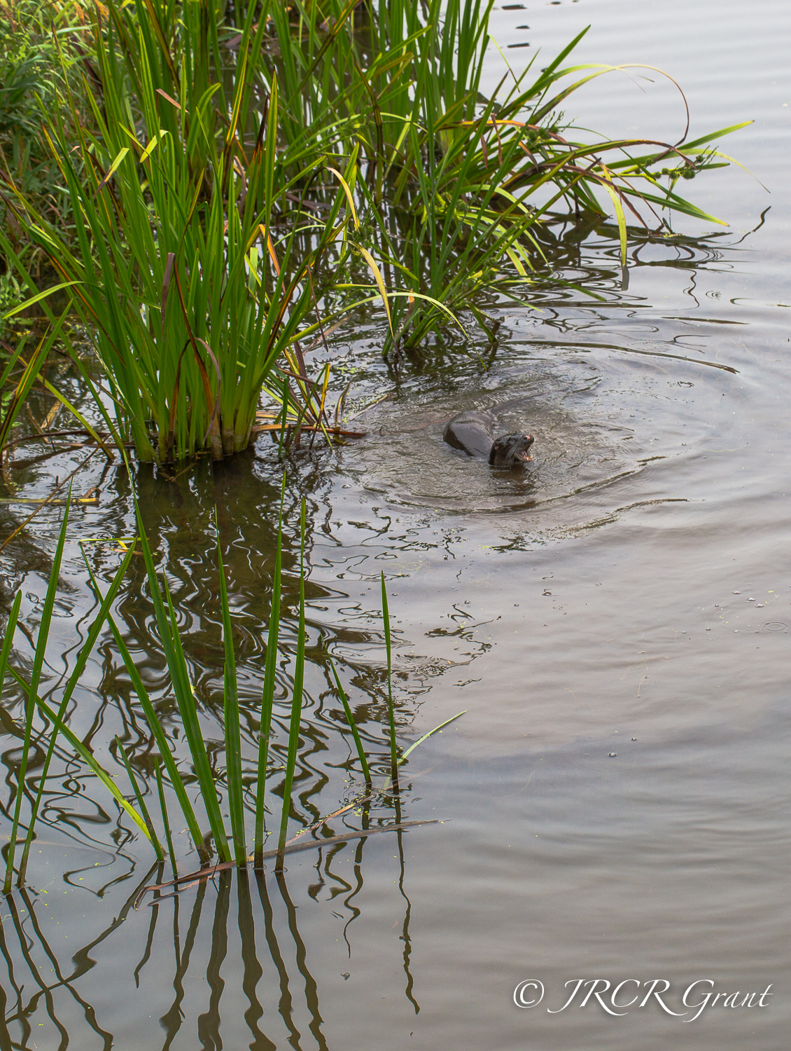 Otter swimming by the reeds